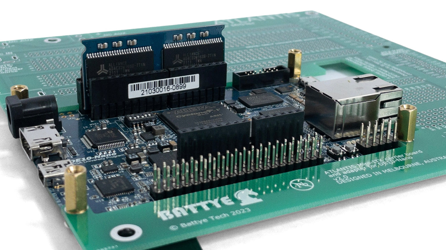 MiSTer mounted from the underside of an ATLANTIS - helpful for extremely low profile cases such as some "slim" Mini-ITX options. Mounting on the underside also provides access to the microSD slot which can be extended by flexible ribbon cable.
