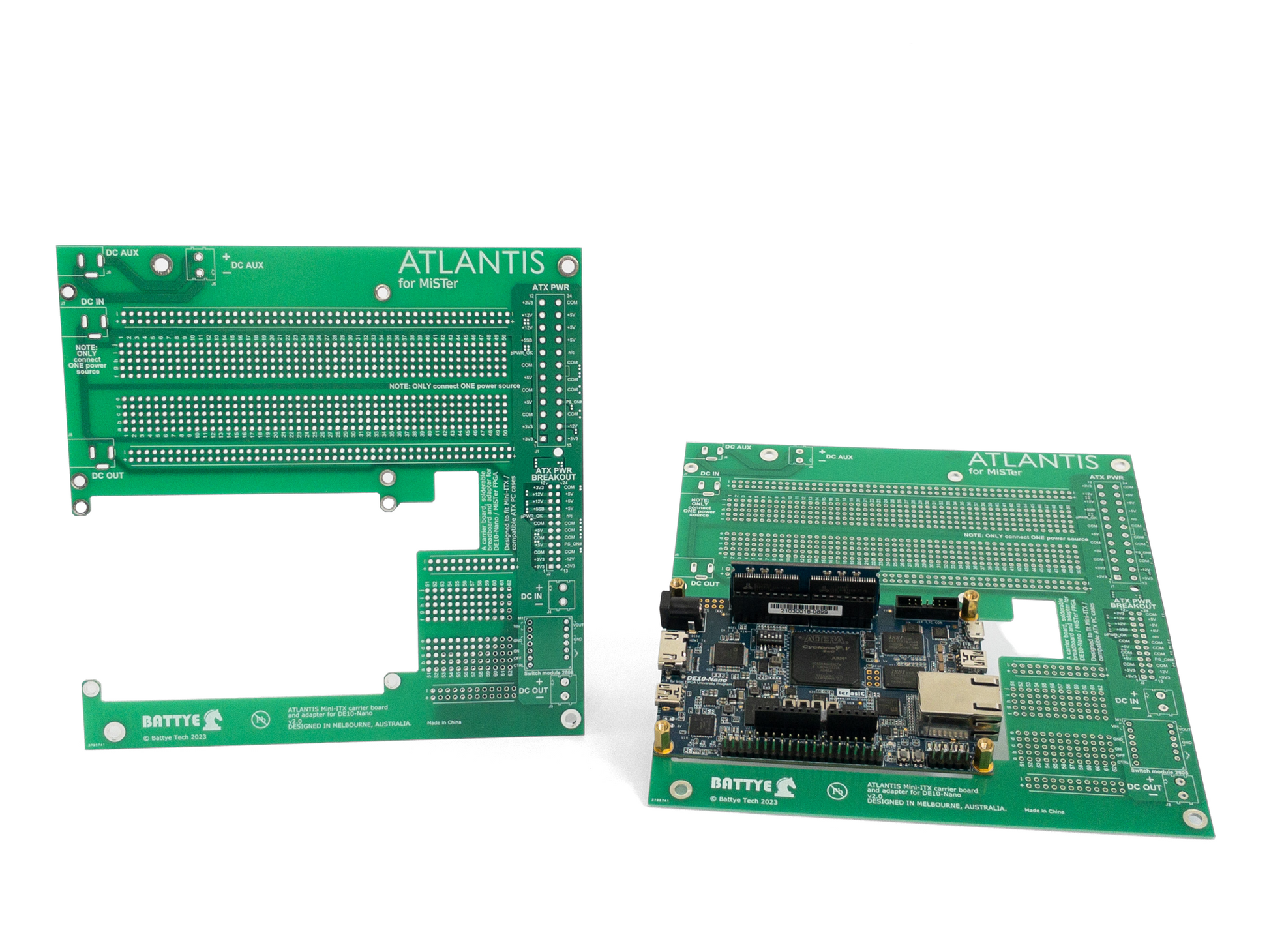 ATLANTIS for MiSTer is a carrier board and adapter allowing you to install your MiSTer FGPA (DE10-Nano) or Raspberry Pi in any PC case including Thin Mini-ITX, mATX and all the way up to ATX and compatible AT PC cases.