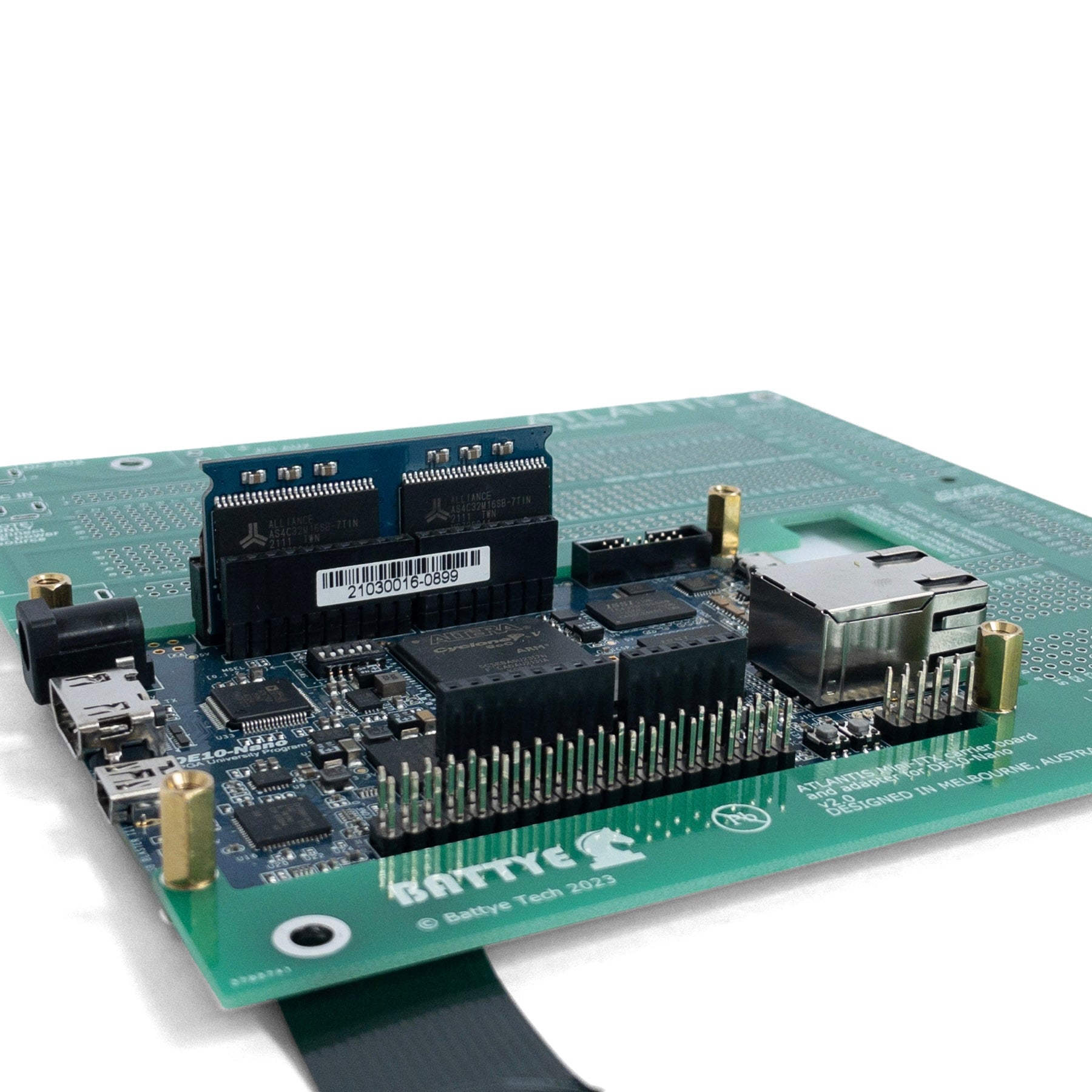 The board itself is designed with additional key features. The cut out allows your MiSTer FGPA to be mounted either from underneath or on the surface of the ATLANTIS and a second DE10-Nano format board can be mounted side by side, above the main solderable breadboard zone. Check out our side by side cables here.